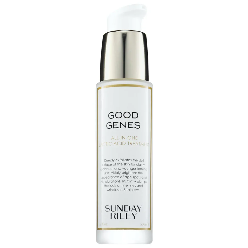 Good Genes All-In-One AHA Lactic Acid Treatment is a skincare powerhouse in a bottle. Formulated with high-potency lactic acid, this treatment gently exfoliates the skin, removing dead cells and revealing a smoother, brighter complexion underneath. It also contains licorice extract to help reduce the appearance of dark spots and fine lines.